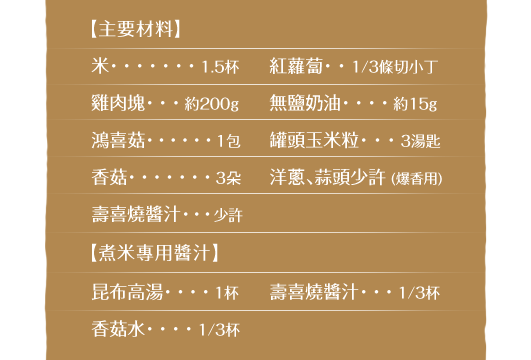 按下電鍋,跳起來翻攪後,再悶個10分鐘,美味又健康的香菇玉米雞肉炊飯就完成啦!