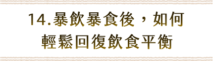每次的相聚總是要開心盡興,特別是年節時刻好久不見,難免吃吃喝喝多了點,以下提供幾招幫助身體快速恢復健康狀態的小撇步,只要把握幾個原則隨時微調,搭配十六茶一起飲用,平衡過年時刻的大吃大喝,年後也能繼續健康窈窕一整年喔!