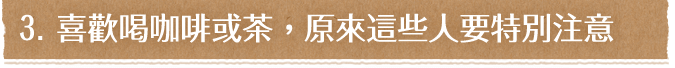 此類族群也要小心,咖啡因會促進腸胃蠕動、增加胃酸分泌,空腹喝可能導致腹瀉、拉肚子等問題,也會使胃食道逆流的狀況更嚴重。另外,容易緊張、焦慮或是對咖啡因敏感的人要留意,須依自己體質去選擇。
