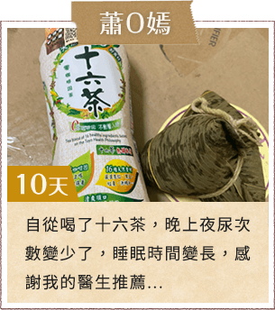 自從喝了十六茶,晚上夜尿次數變少了,睡眠時間變長,感謝🙏我的醫生推薦!